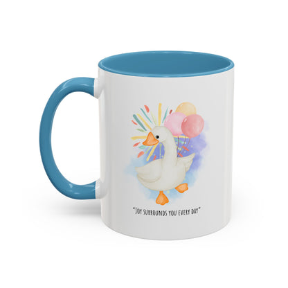 Add a little happiness to your day with the Joy Ceramic Mug. Featuring a cheerful duck illustration in a retro watercolor style, paired with the inspiring quote “Joy surround you every day”, this mug is designed to bring positivity to every sip.